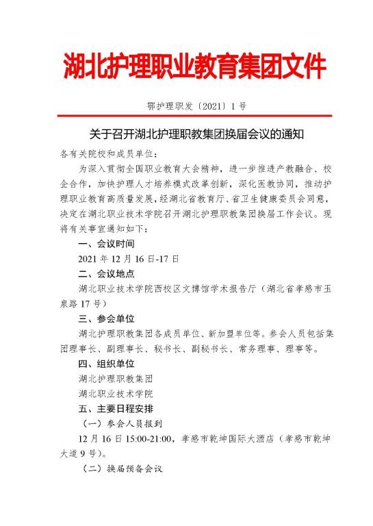 关于召开湖北护理职教集团换届会议的通知