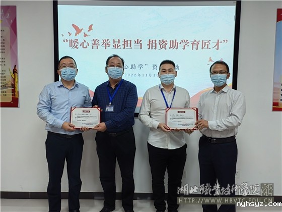 (本网讯 郭自鹏 王宇阳)点滴爱心聚沙成塔,善意浇灌连木成林。为能让品学兼优的贫困学生圆求学梦,11月10日下午,“暖心善举显担当 捐资助学育匠才”爱心企业助力贫困学生仪式在南校区图新楼801会议室举行,党委委员、副校长梅重、袁胜华,党委学生工作部部长魏俊桃、校园建设与后勤保障处处长何玉初等参加活动。