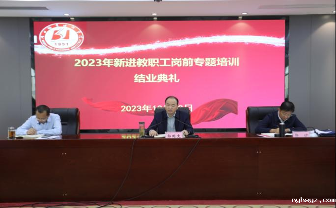 10月28日上午,学校2023年新进教职工岗前专题培训班结业典礼在图新大楼六楼会议室举行。党委书记郭国文、校长郭沙出席会议并讲话,全体新进教职工参加会议。党委组织部(党委教师工作部、人事处)负责人主持会议。