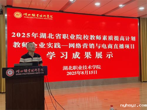 (本网讯 肖敏晨 毛婷 马江浩 王峰 李蓓蕾 李媛 汪行光 宋巍)8月15日,湖北省2025年职业院校教师素质提高计划教师企业实践——网络营销与电商直播项目学习成果展示暨结业式在西区文博馆学术报告厅举行,校党委委员、副校长杨立明出席并讲话,授课专家代表黄享苟、我校继续教育学院院长丁浙英、财经与旅游学院党总支书记徐斌华等以及60名参训学员共同见证活动。活动由财经与旅游学院院长曹艳芬主持。