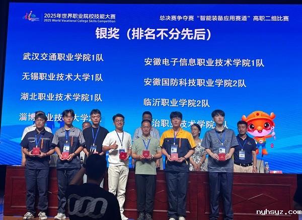 (本网讯 刘欣)8月24日至26日,2025年世界职业院校技能大赛总决赛高职组智能装备应用赛道争夺赛在浙江职业技术大学举行,来自全国的两百多支代表队同台竞技。经过三天激烈角逐,由我校机电工程学院教师黄学先、刘欣指导的钱富豪、田鑫烁、段进城、李双语等学生团队,凭借精湛的专业技能和全面的综合素质,荣获银奖。